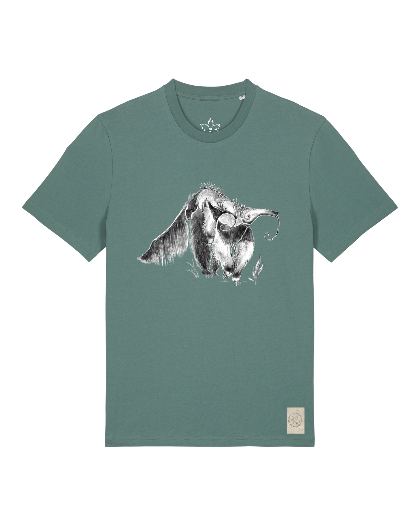 bio-unisex-medium fit-tshirt-ameisenbär-sttu169-eukalyptus-front