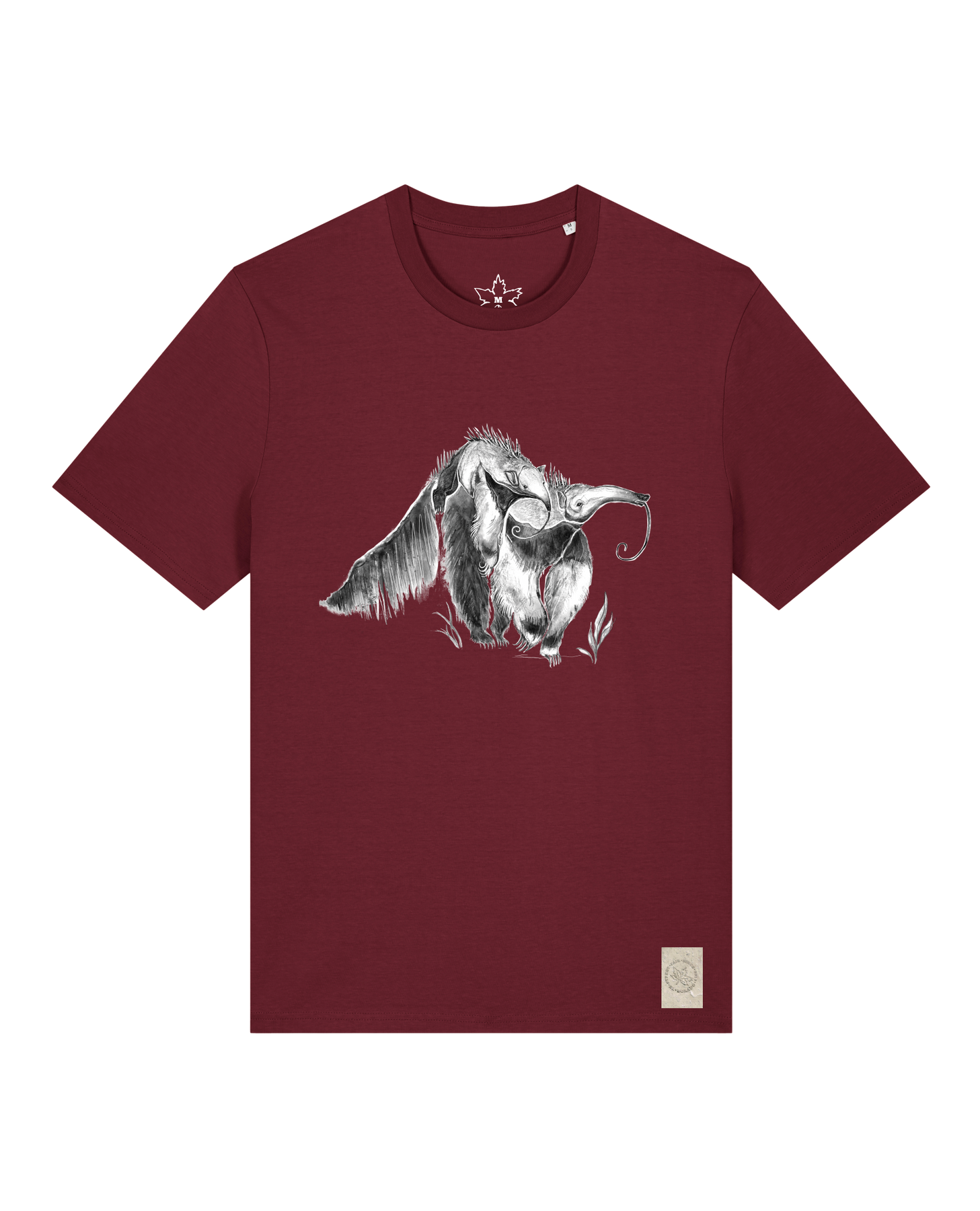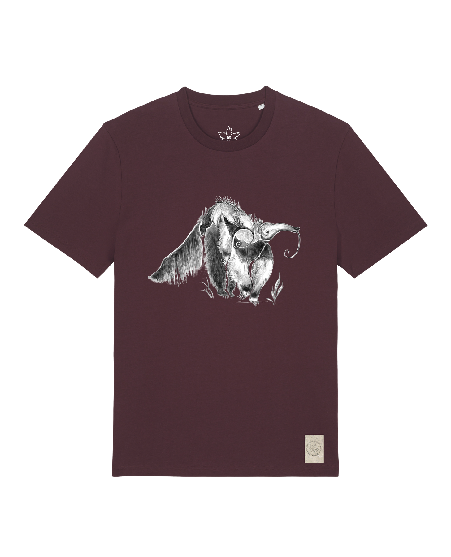 bio-unisex-medium fit-tshirt-ameisenbär-sttu169-burgunder rot-front