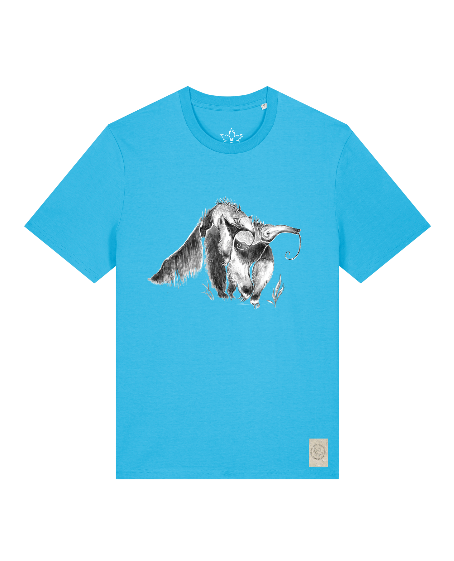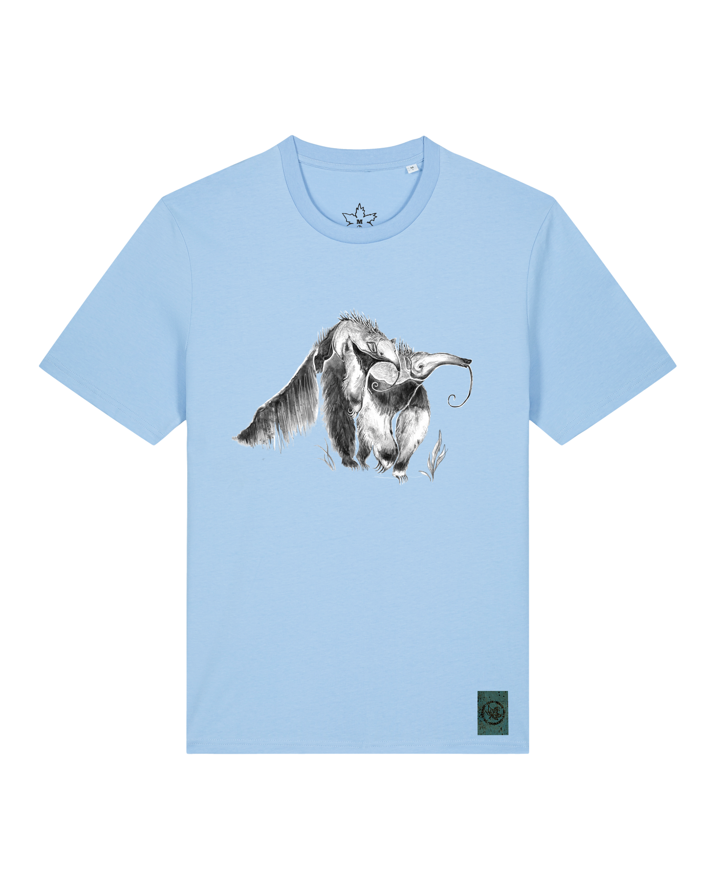 bio-unisex-medium fit-tshirt-ameisenbär-sttu169-wasserblau-front