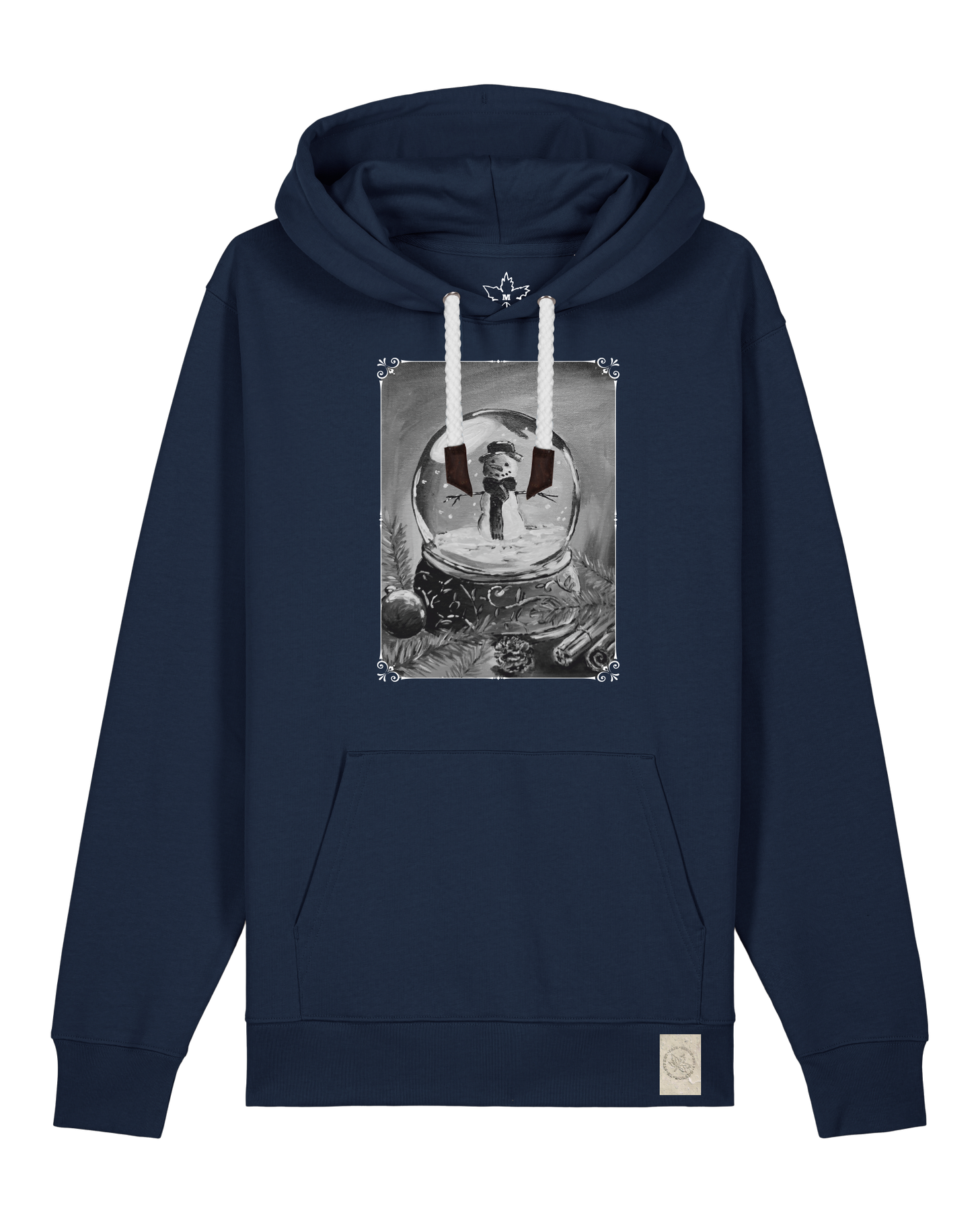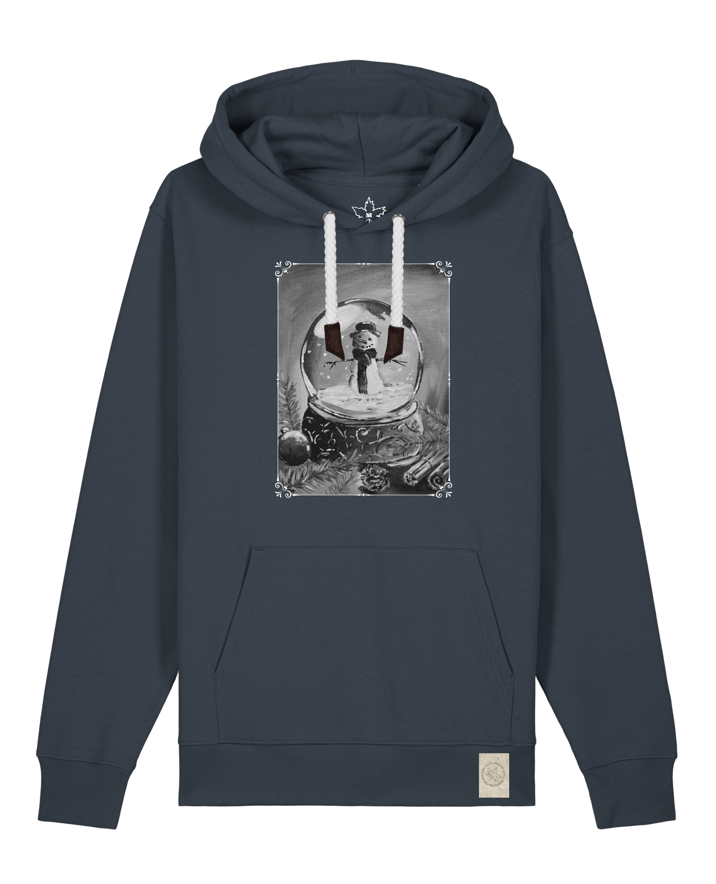 bio-unisex-medium fit-hoodie-schneekugel-stsu177-marine-weiße kordel-front