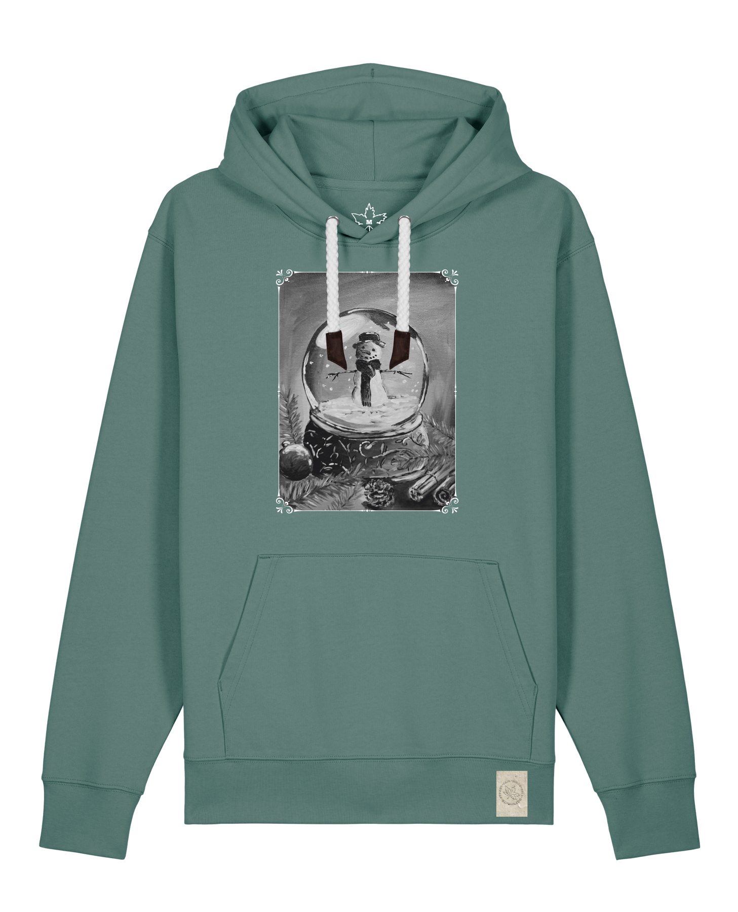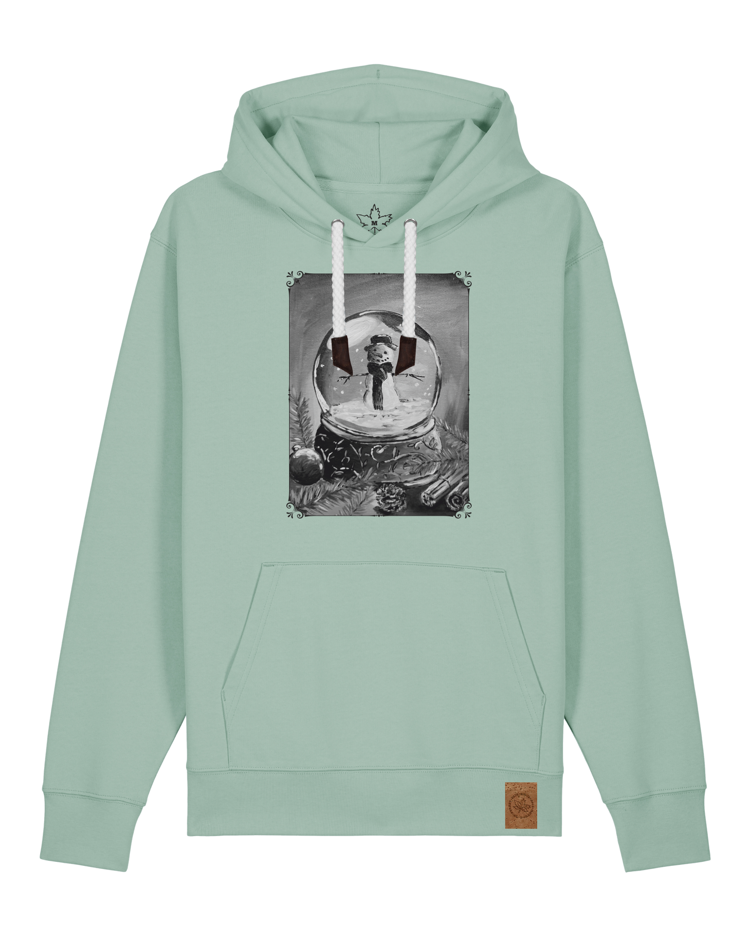 bio-unisex-medium fit-hoodie-schneekugel-stsu177-eukalyptus-weiße kordel-front