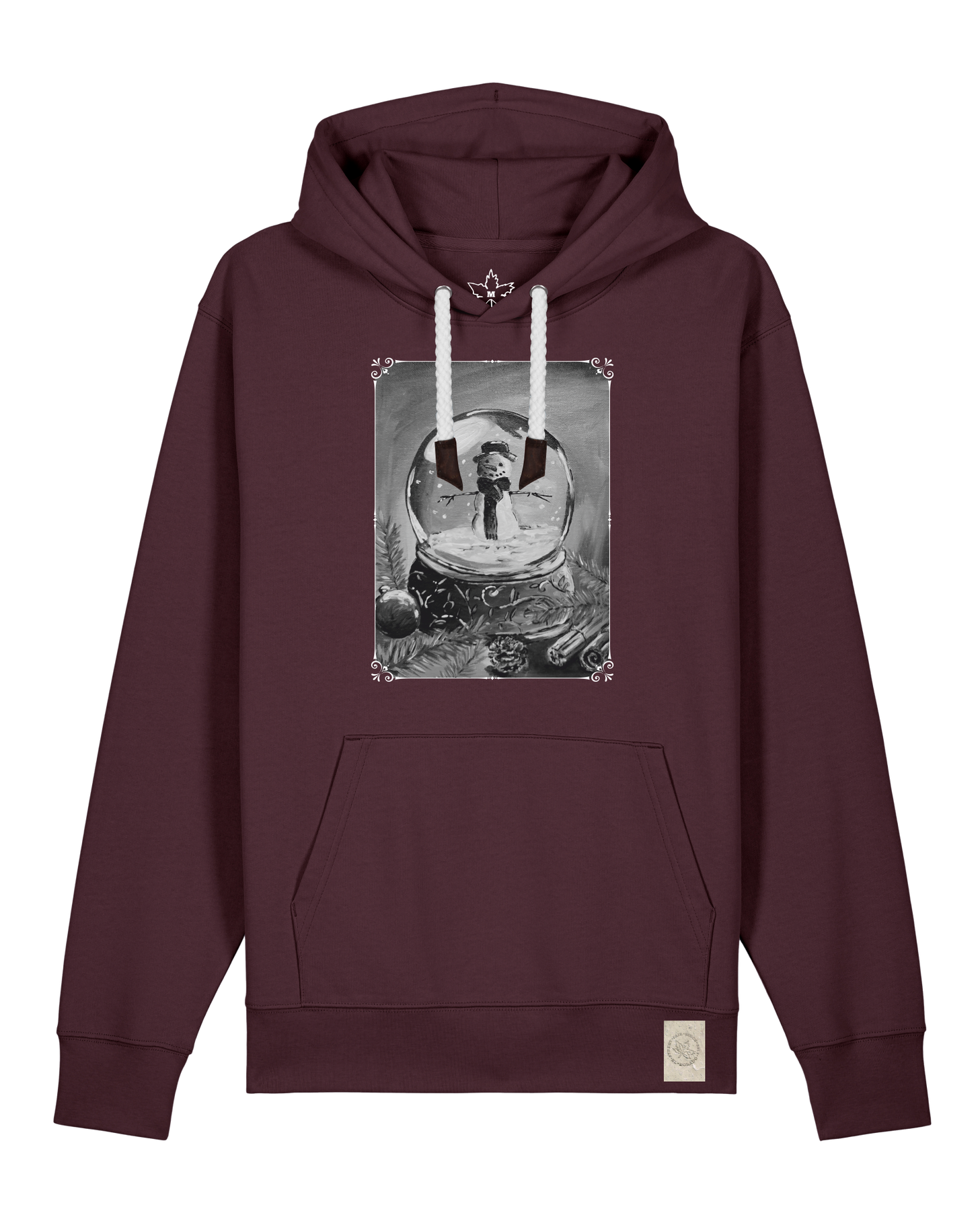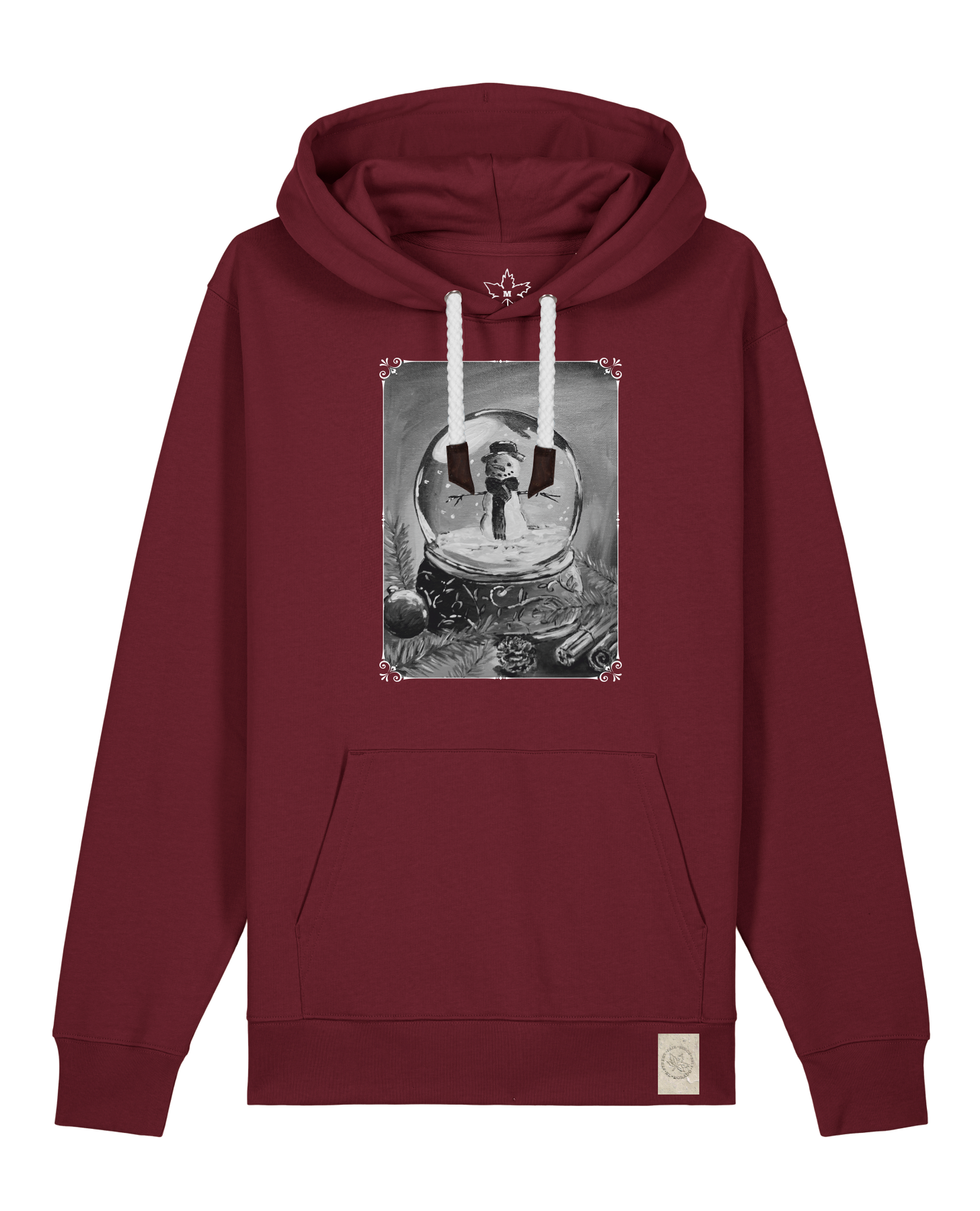 bio-unisex-medium fit-hoodie-schneekugel-stsu177-burgunder rot-weiße kordel-front