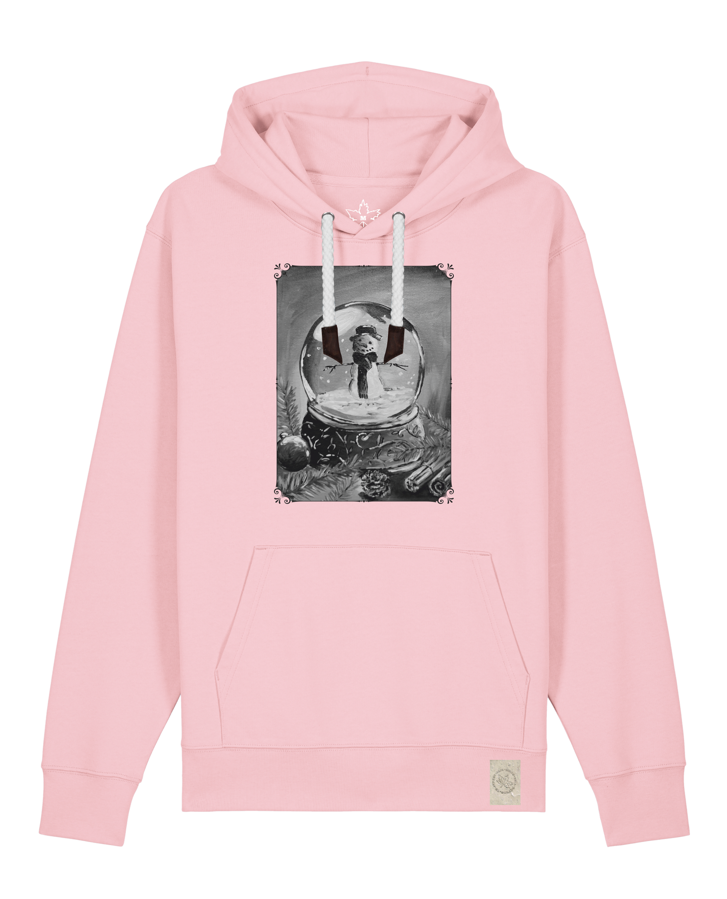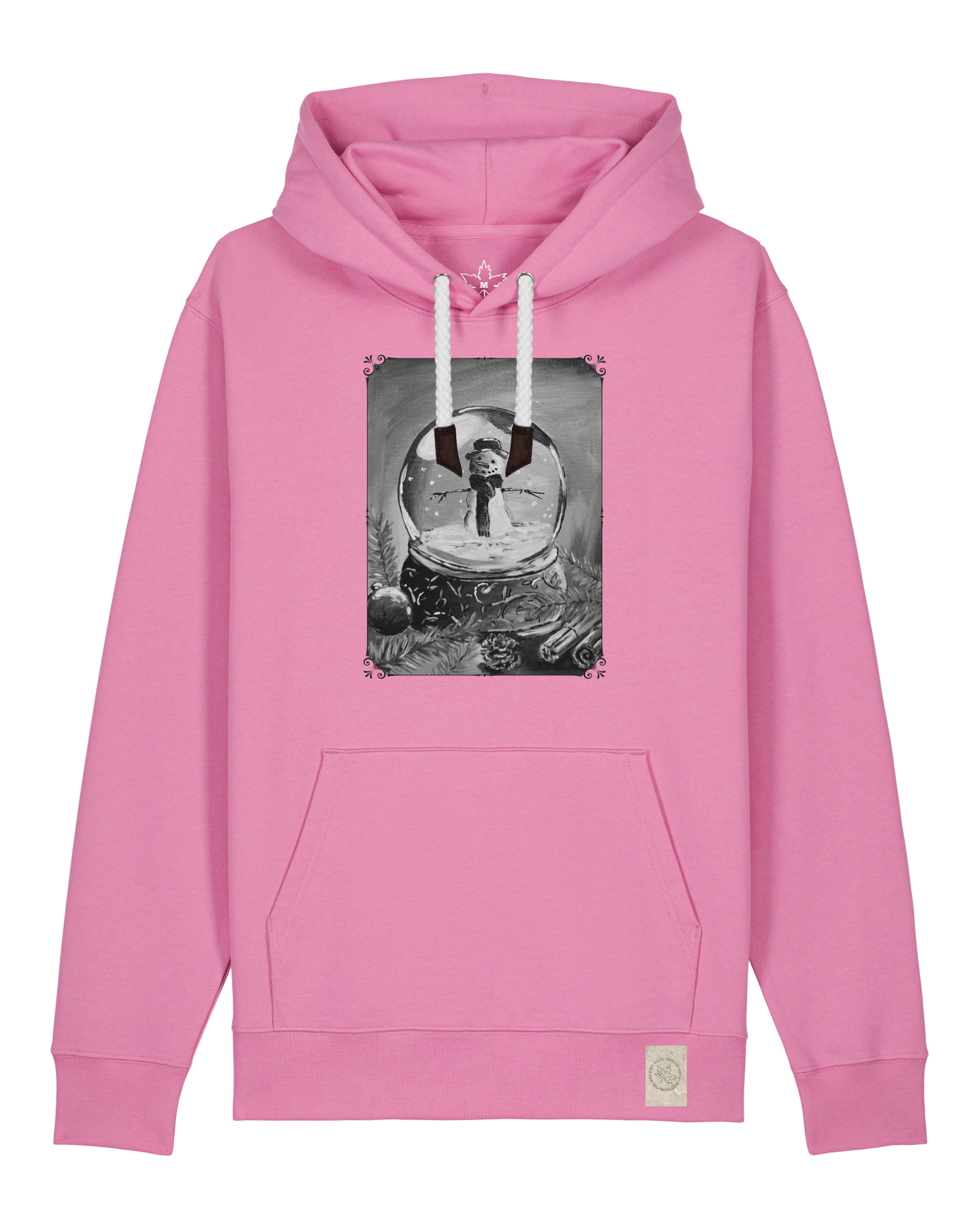 bio-unisex-medium fit-hoodie-schneekugel-stsu177-hortensie-weiße kordel-front