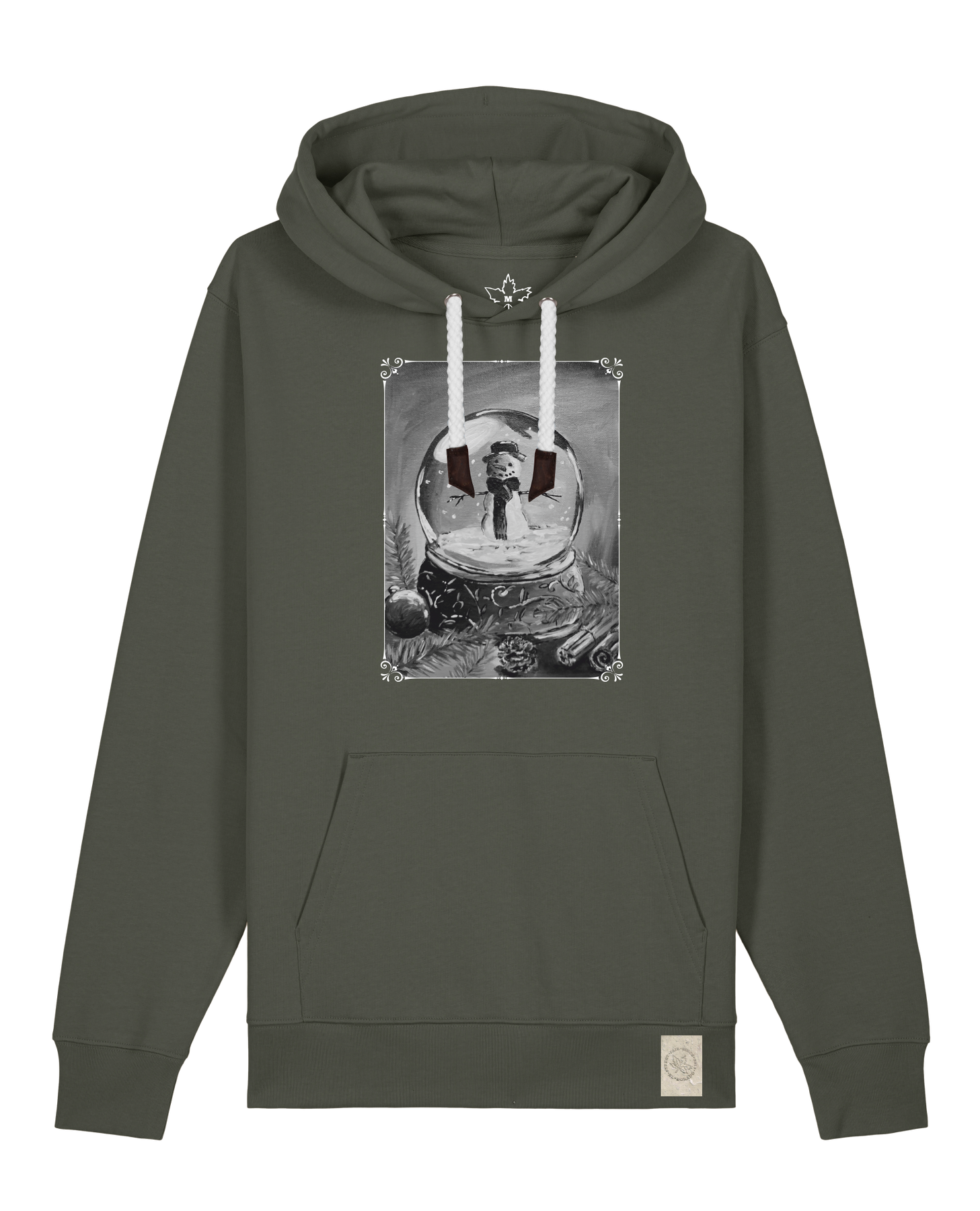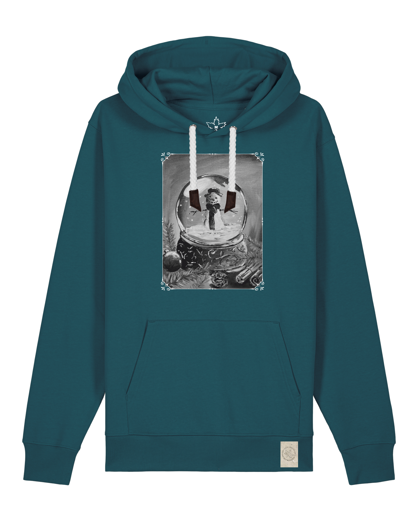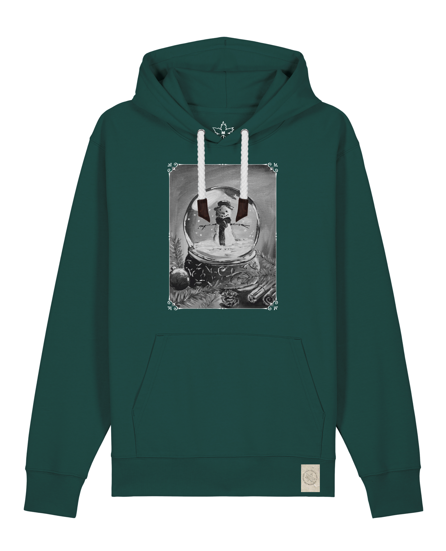 bio-unisex-medium fit-hoodie-schneekugel-stsu177-nordmanntanne-weiße kordel-front