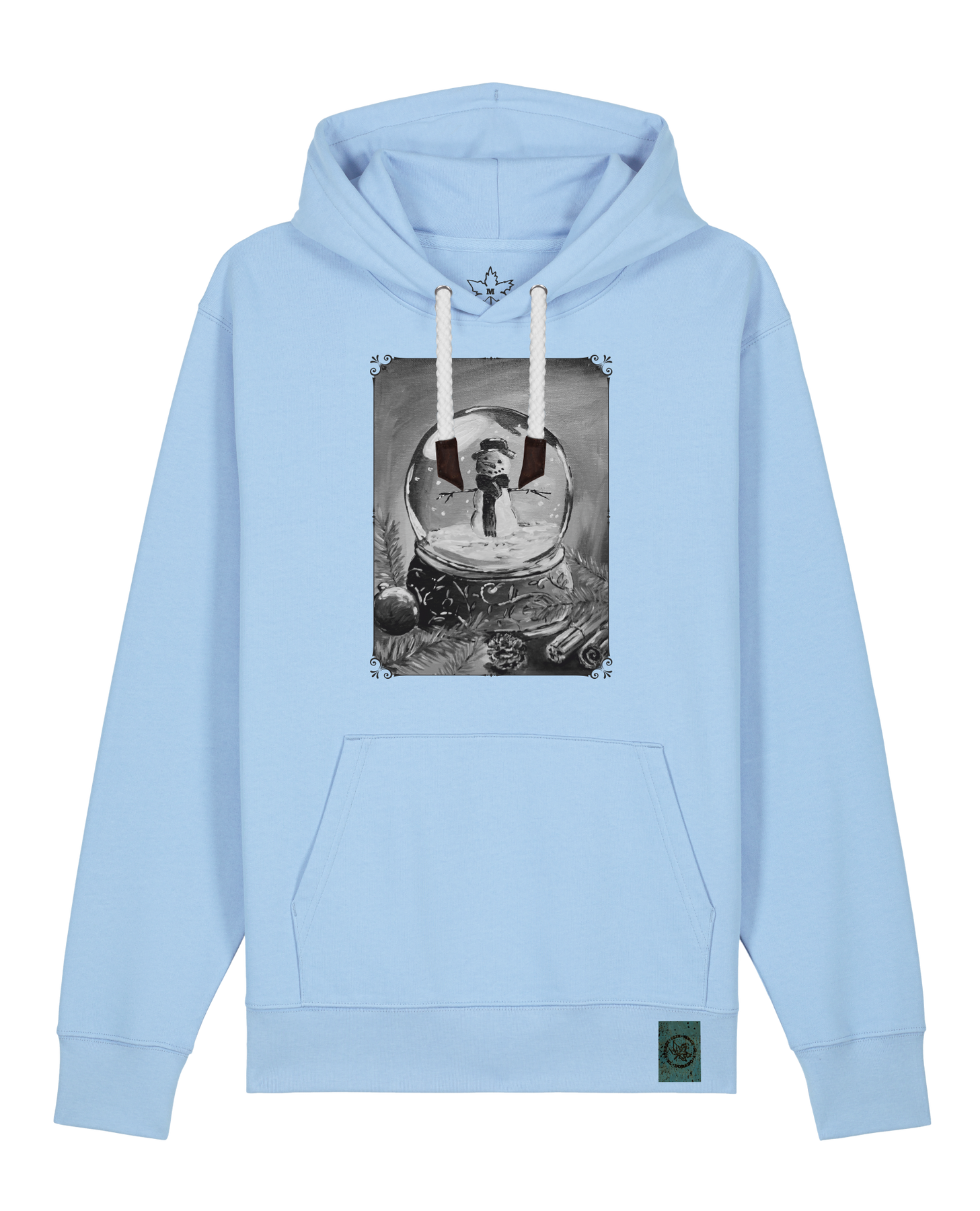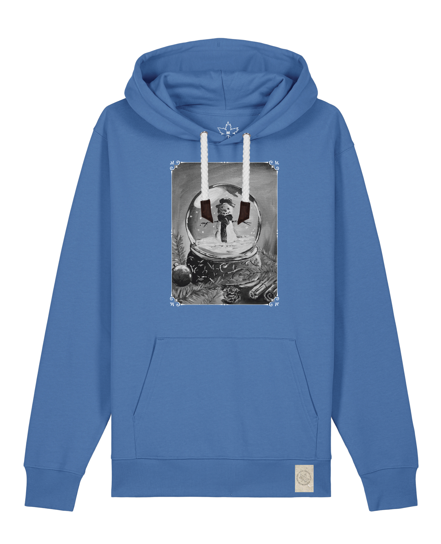 bio-unisex-medium fit-hoodie-schneekugel-stsu177-kornblume-weiße kordel-front