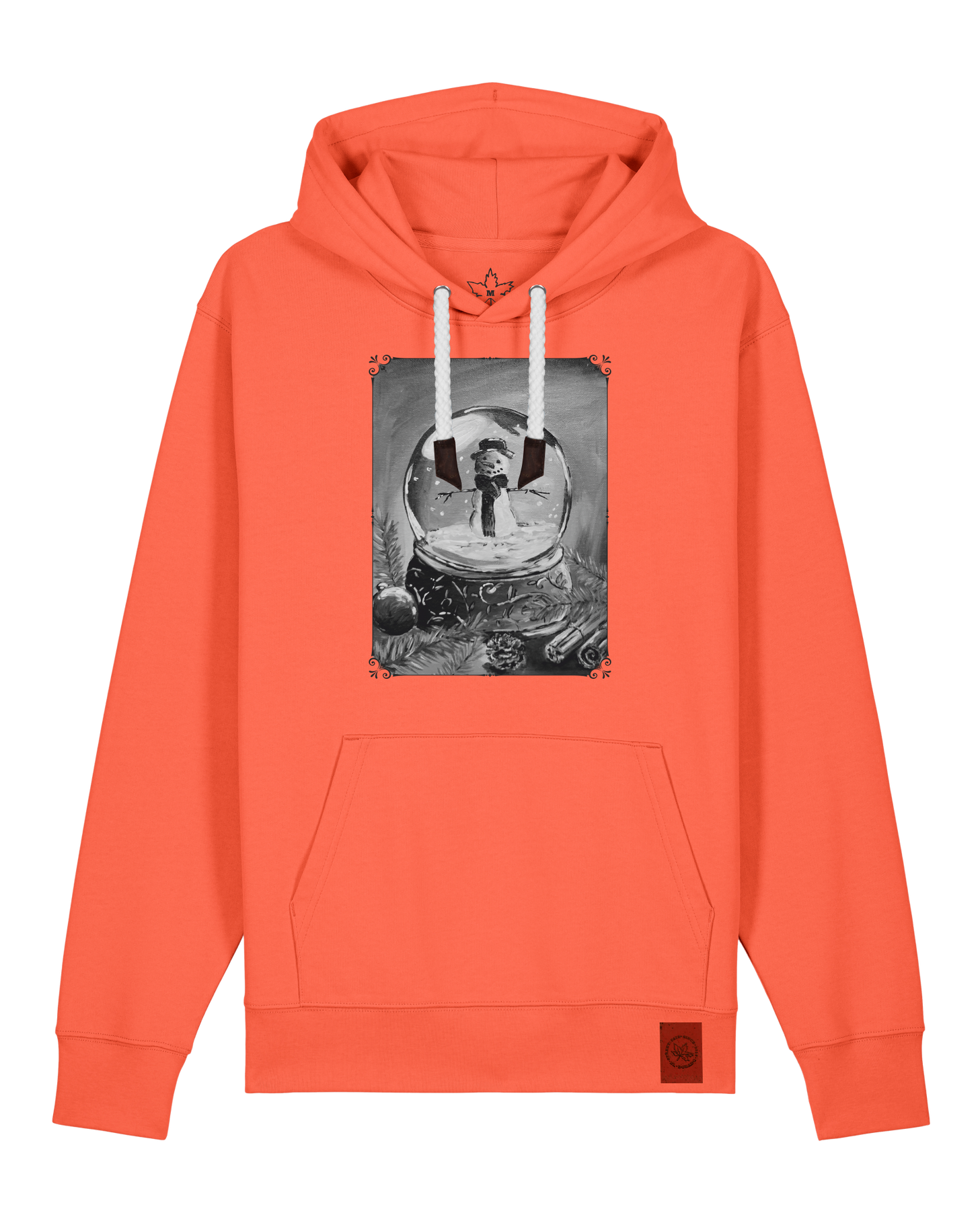 bio-unisex-medium fit-hoodie-schneekugel-stsu177-mandarine-weiße kordel-front