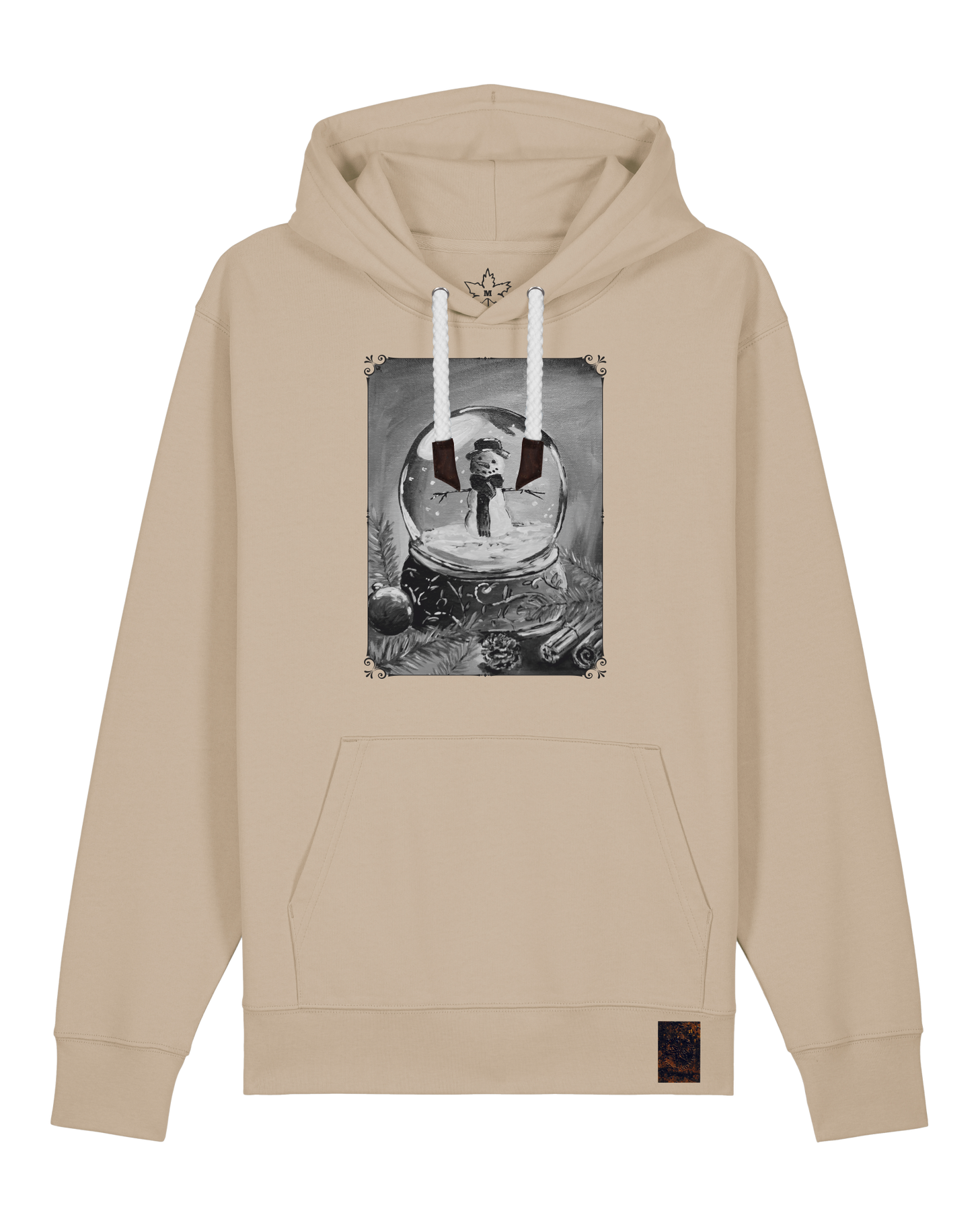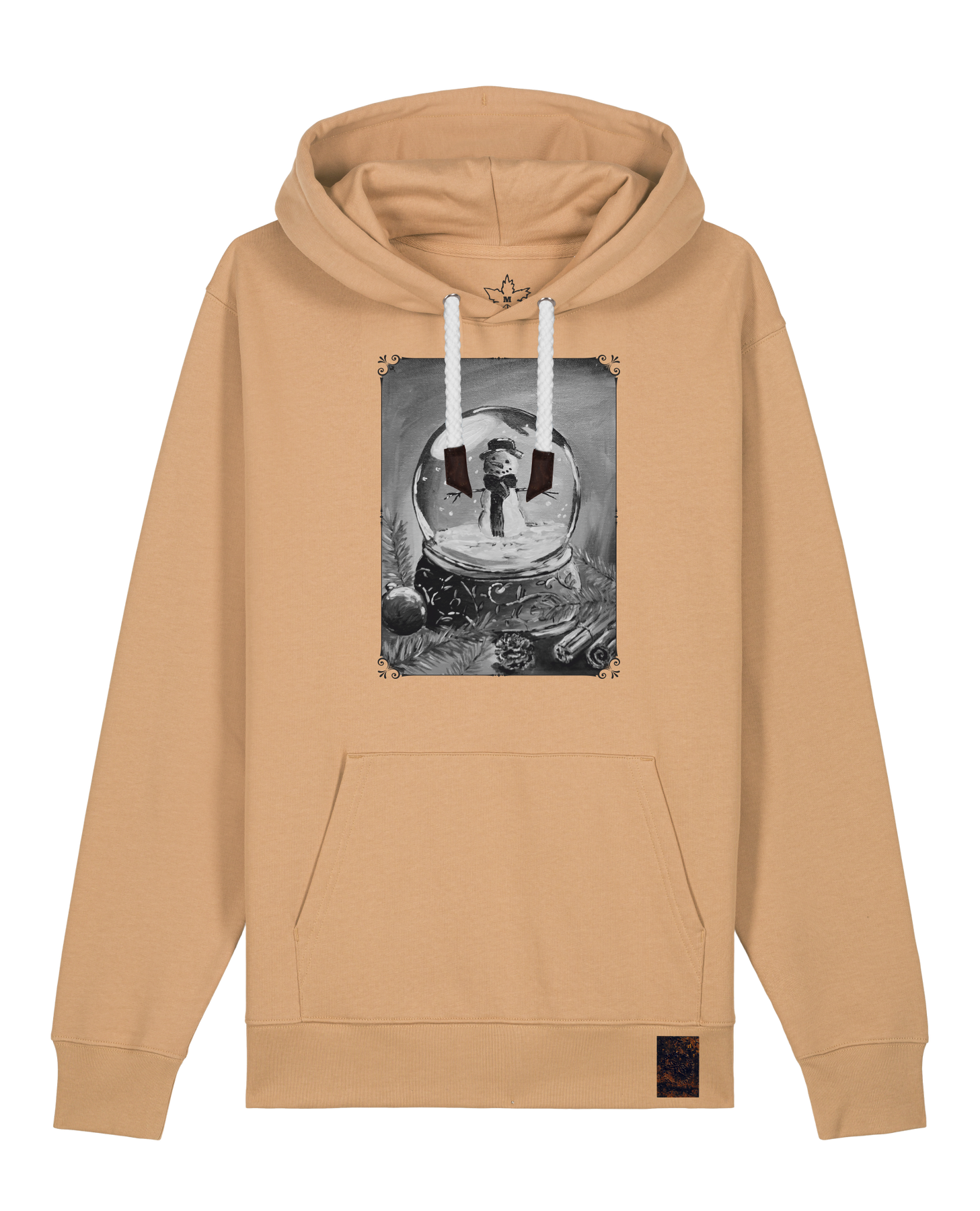 bio-unisex-medium fit-hoodie-schneekugel-stsu177-treibsand-weiße kordel-front