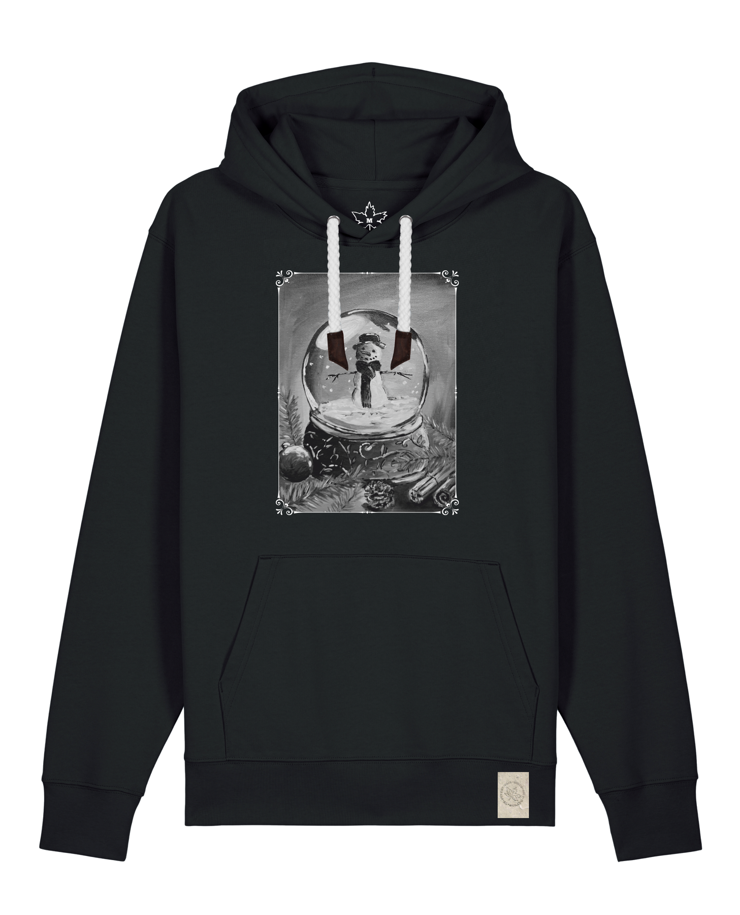 bio-unisex-medium fit-hoodie-schneekugel-stsu177-schwarz-weiße kordel-front