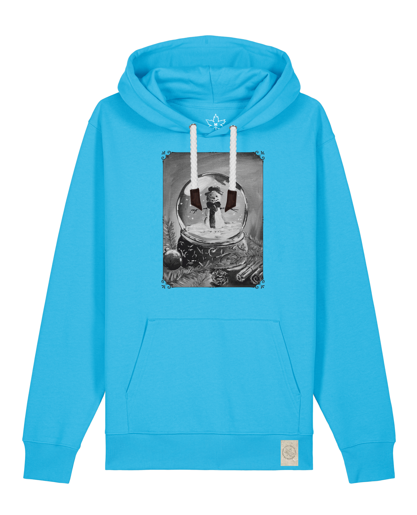 bio-unisex-medium fit-hoodie-schneekugel-stsu177-wasserblau-weiße kordel-front